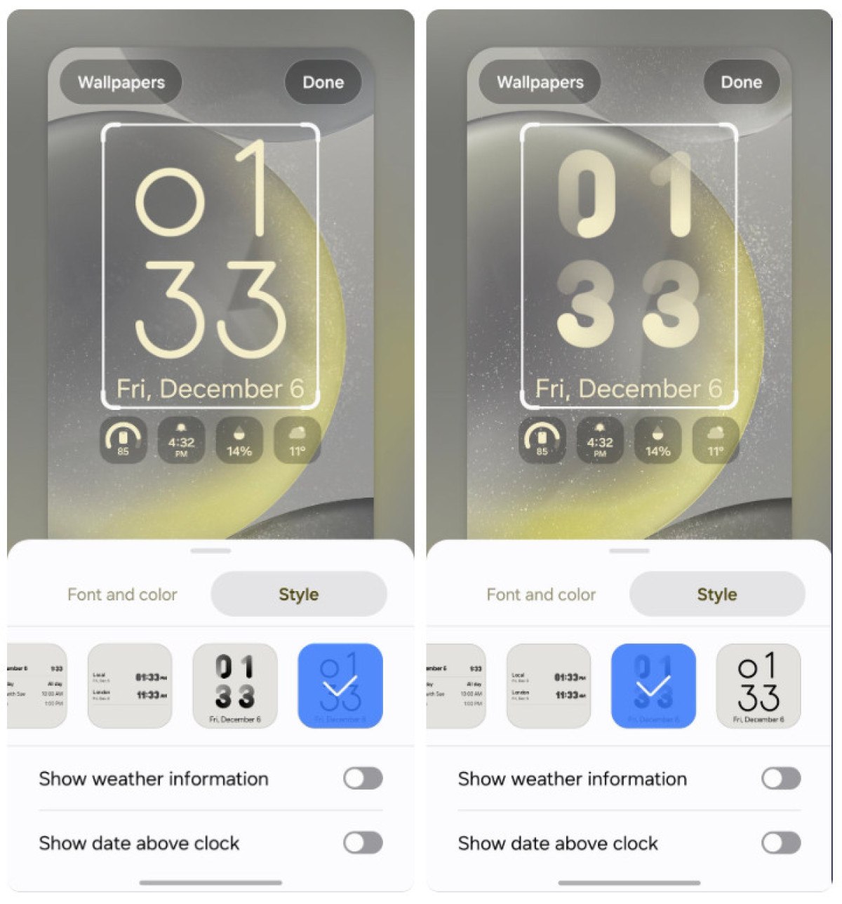 Özelleştirilebilir Kilit Ekranı: Yeni saat stilleri, animasyonlar ve widget seçenekleriyle kilit ekranı daha fazla kişiselleştirilebiliyor.